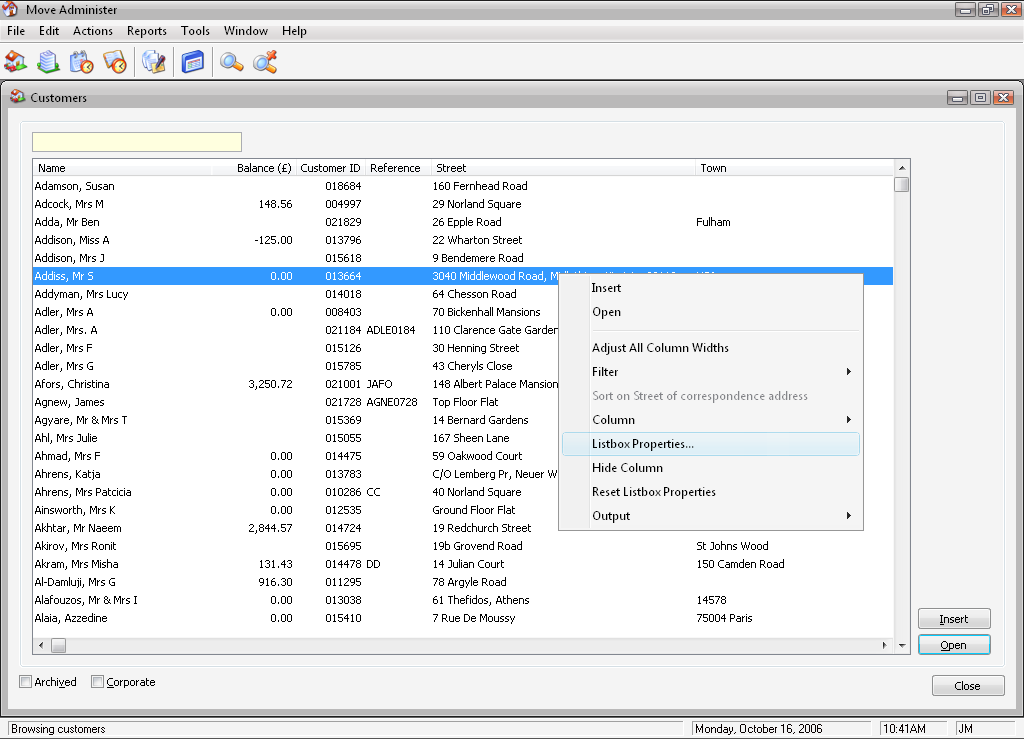 See the example screen shots below to see how Move Administer looks while running in Windows Vista: