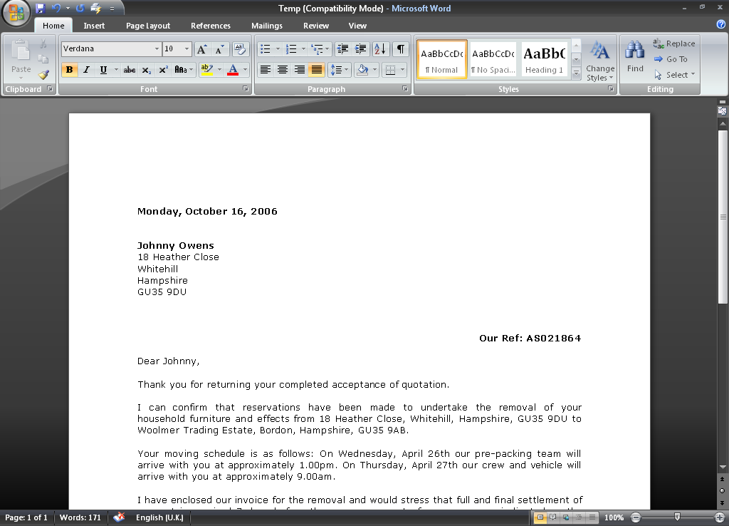 Our first impression of Office 2007 is that it has changed dramatically, but for the better. All menu’s are now displayed in groups instead of old school menu items making it easier and quicker to navigate through the software. But don’t take our word for it, take a look at the screen shots below, taken when exporting from Move Administer:
